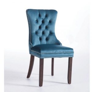 Handmade pouffe covered in eye catching blue & white fabric with button detailing.